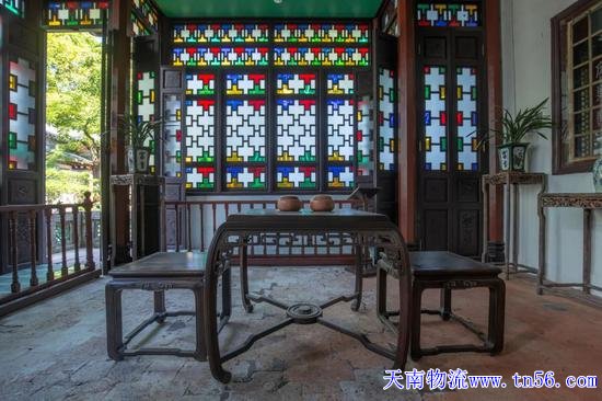 外緣呈三角形,繞以青磚圍墻,在有限的空間內(nèi)融入了多種造園手法。